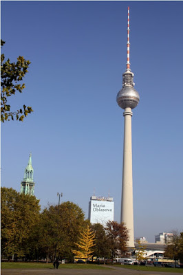 Здесь же, на Александр Платц, расположена знаменитая Берлинская телебашня, которой с высотой в 368 метров является самой высоким сооружением Германии и после Останкинской телебашни в Москве (540 м), Киевской телебашни и Рижской телебашни четвёртой по высоте телебашней Европы: